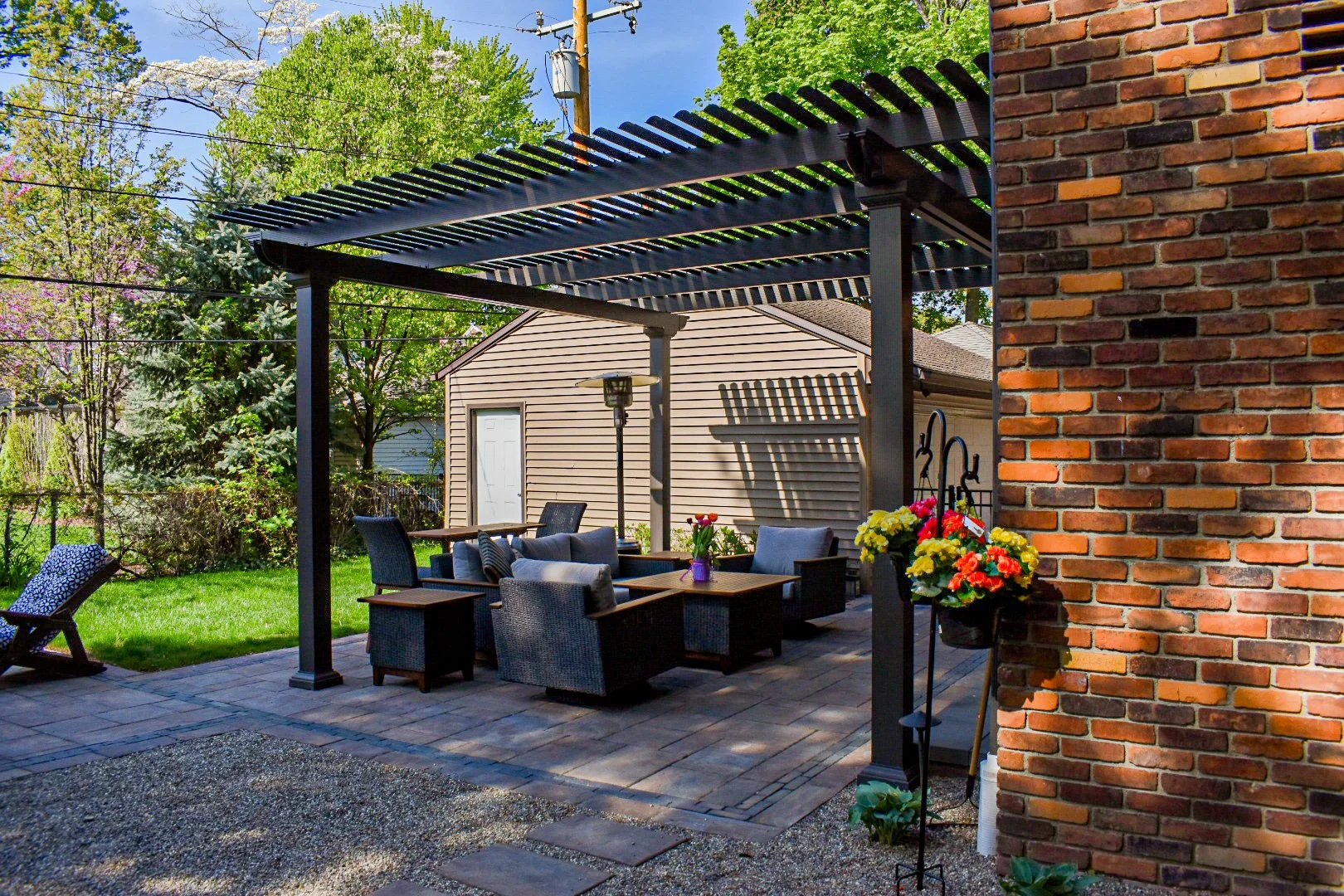 Installing a pergola over a patio creates a comfortable outdoor lounge or dining space.
